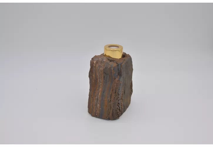 Een diffuser van Tijgerijzer afkomstig uit Brazilië met goudkleurige ring. (exclusief stokjes en inhoud)